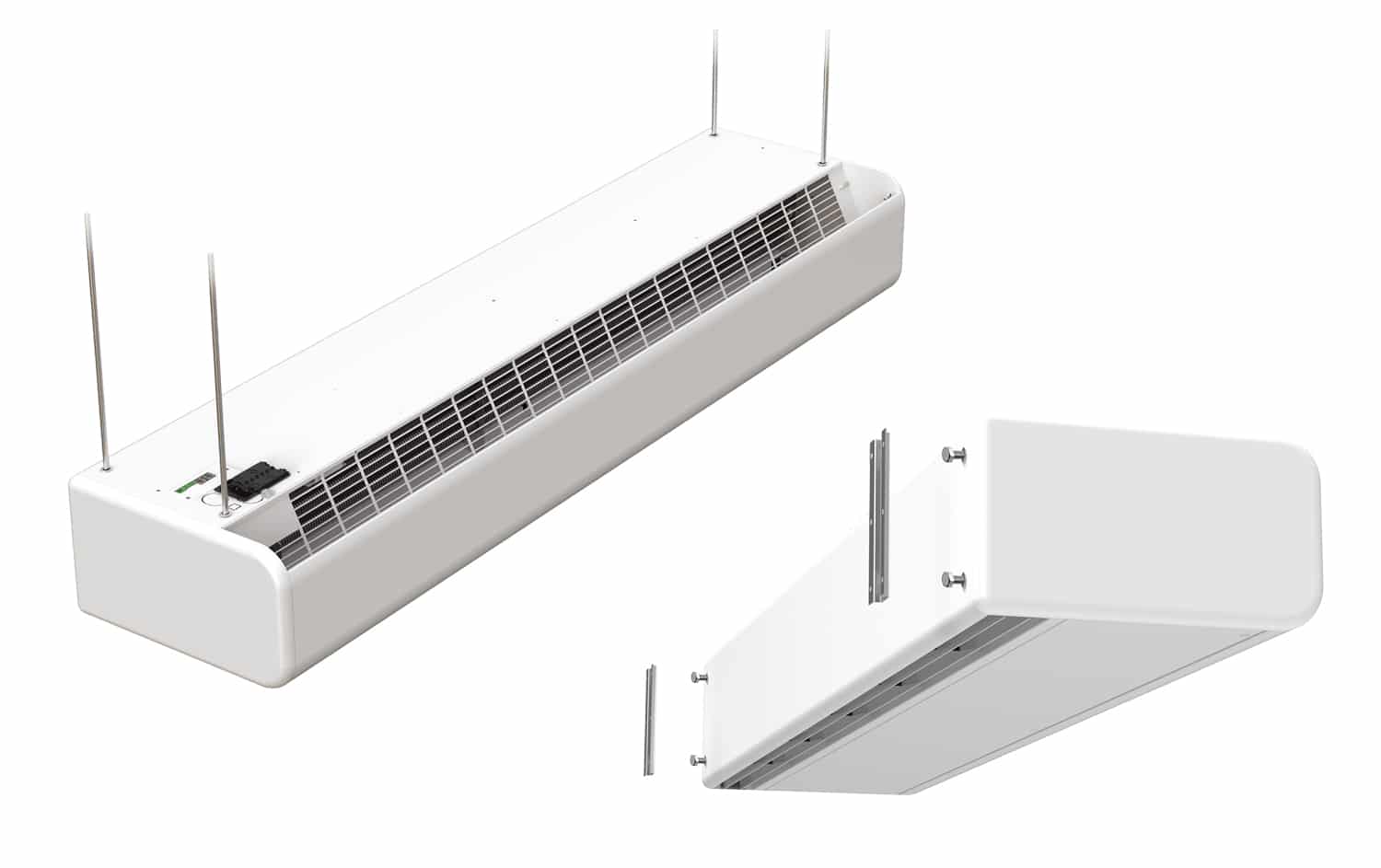 - 2-hastighets støysvak tverrstrømvifter drevet av ytterrotormotor.